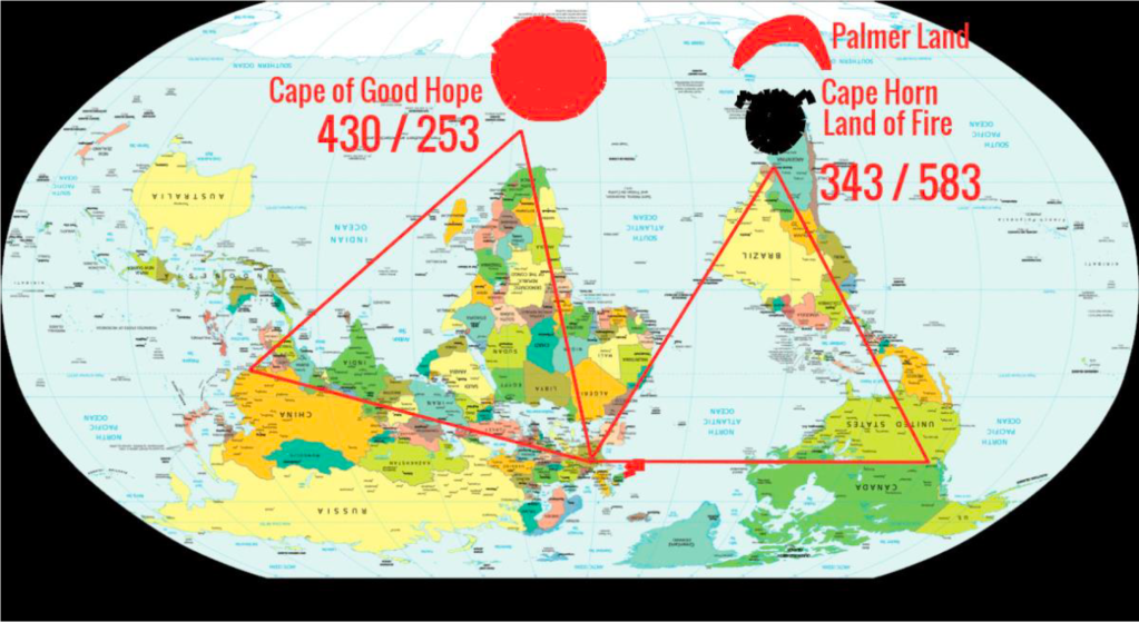 What was the connection, then? Well, at this point, it was important to look at the latitude of the southernmost peak of the Americas: 56°. So, 83° in the northern hemisphere and 56° in the southern hemisphere – where was the middle point of that line on the 66.6°W longitude to be found?